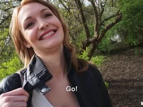 Public Agent Hot blonde student fucks cancer in the woods for cash