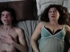 Stepmother ignores stepfather’s face while she plays with herself.